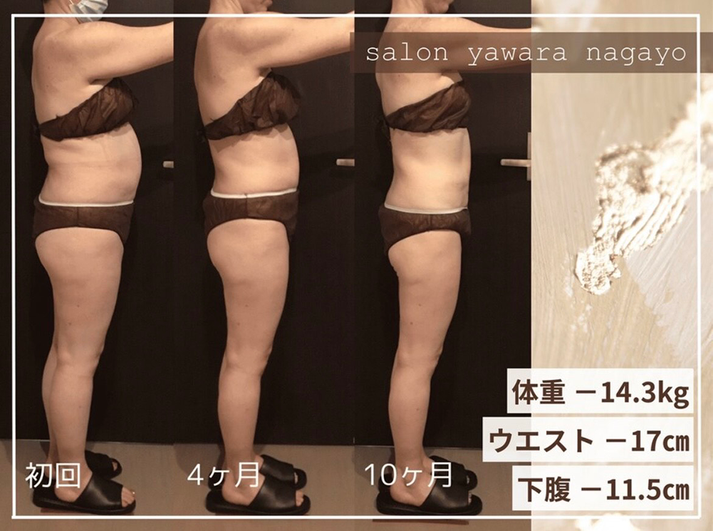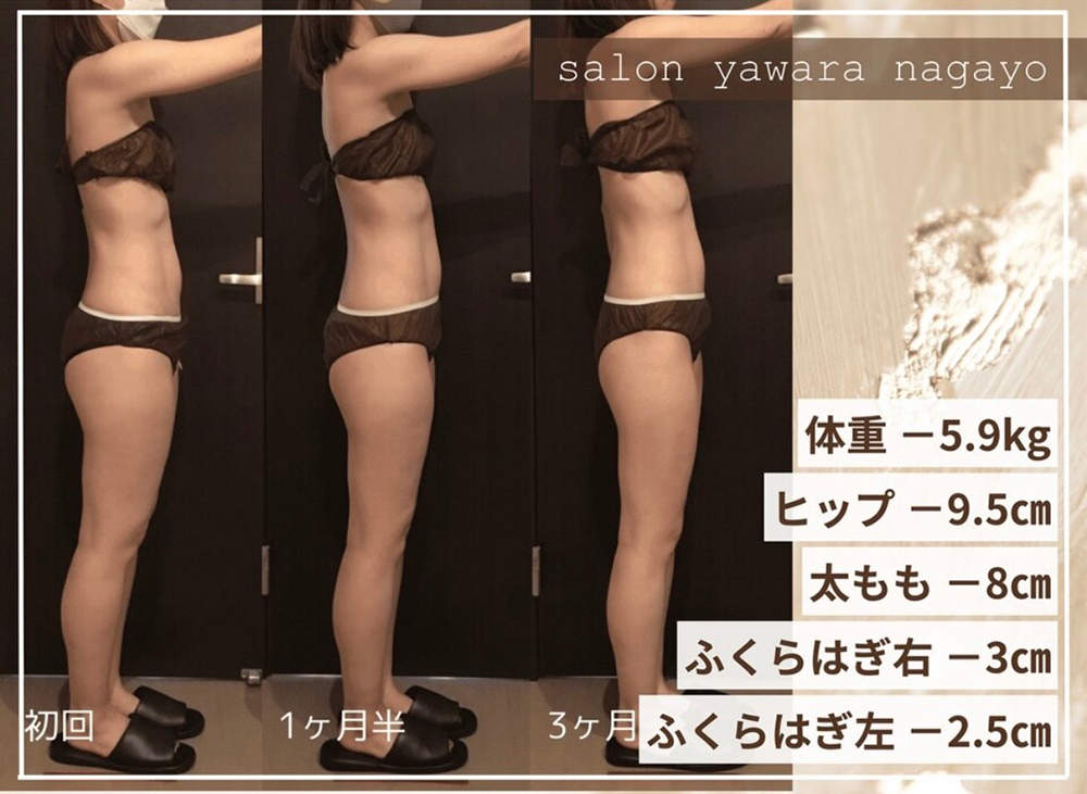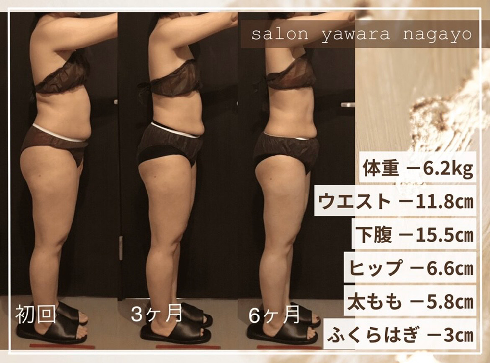 再度サイズ測定し効果を実感していただいきます。また効果が持続するように食事指導なども行います。
